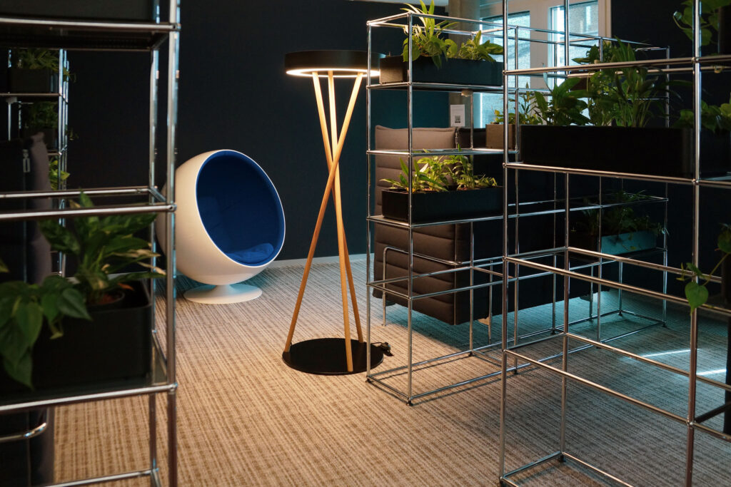 Geht nicht, gibt’s nicht: eine Stehleuchte für die Basler Kantonalbank. Gemeinsam mit Pascal Häberli von der Lichtwerkstatt, stellte sich perdix dieser Herausforderung. Vom wackeligen ersten Prototypen mit langen, dünnen Beinen entwickelte sich die Stehleuchte zu einer robusten Version mit stabilen Rundstäben aus Eiche.